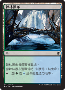 | Rules | Thornwood Falls enters the battlefield tapped. When Thornwood Falls enters the battlefield, you gain 1 life. : Add or . |