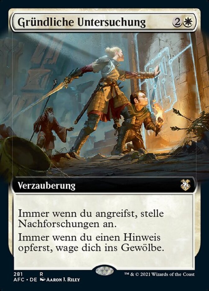 | Rules | Whenever you attack, investigate. (Create a colorless Clue artifact token with ", Sacrifice this artifact: Draw a card.") Whenever you sacrifice a Clue, venture into the dungeon. (Enter the first room or advance to the next room.) |