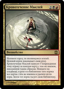| Rules | Choose a nonland card name. Target player reveals their hand. Thought Hemorrhage deals 3 damage to that player for each card with the chosen name revealed this way. Search that player's graveyard, hand, and library for all cards with that name and exile them. Then that player shuffles. |
