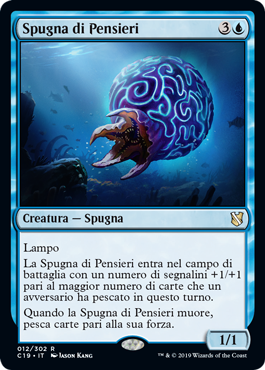 | Rules | Flash Thought Sponge enters the battlefield with a number of +1/+1 counters on it equal to the greatest number of cards an opponent has drawn this turn. When Thought Sponge dies, draw cards equal to its power. |