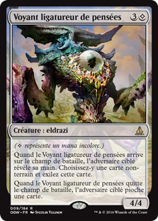 | Rules | ( represents colorless mana.) When Thought-Knot Seer enters the battlefield, target opponent reveals their hand. You choose a nonland card from it and exile that card. When Thought-Knot Seer leaves the battlefield, target opponent draws a card. |
