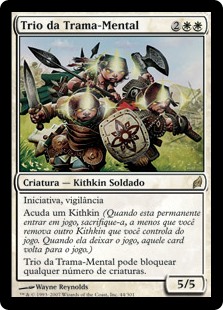 | Rules | First strike, vigilance Champion a Kithkin (When this enters the battlefield, sacrifice it unless you exile another Kithkin you control. When this leaves the battlefield, that card returns to the battlefield.) Thoughtweft Trio can block any number of creatures. |