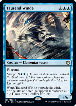 | Rules | Flying Morph (You may cast this card face down as a 2/2 creature for . Turn it face up any time for its morph cost.) When Thousand Winds is turned face up, return all other tapped creatures to their owners' hands. |