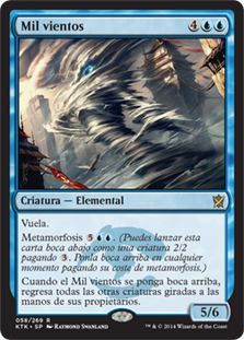 | Rules | Flying Morph (You may cast this card face down as a 2/2 creature for . Turn it face up any time for its morph cost.) When Thousand Winds is turned face up, return all other tapped creatures to their owners' hands. |
