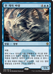 | Rules | Flying Morph (You may cast this card face down as a 2/2 creature for . Turn it face up any time for its morph cost.) When Thousand Winds is turned face up, return all other tapped creatures to their owners' hands. |