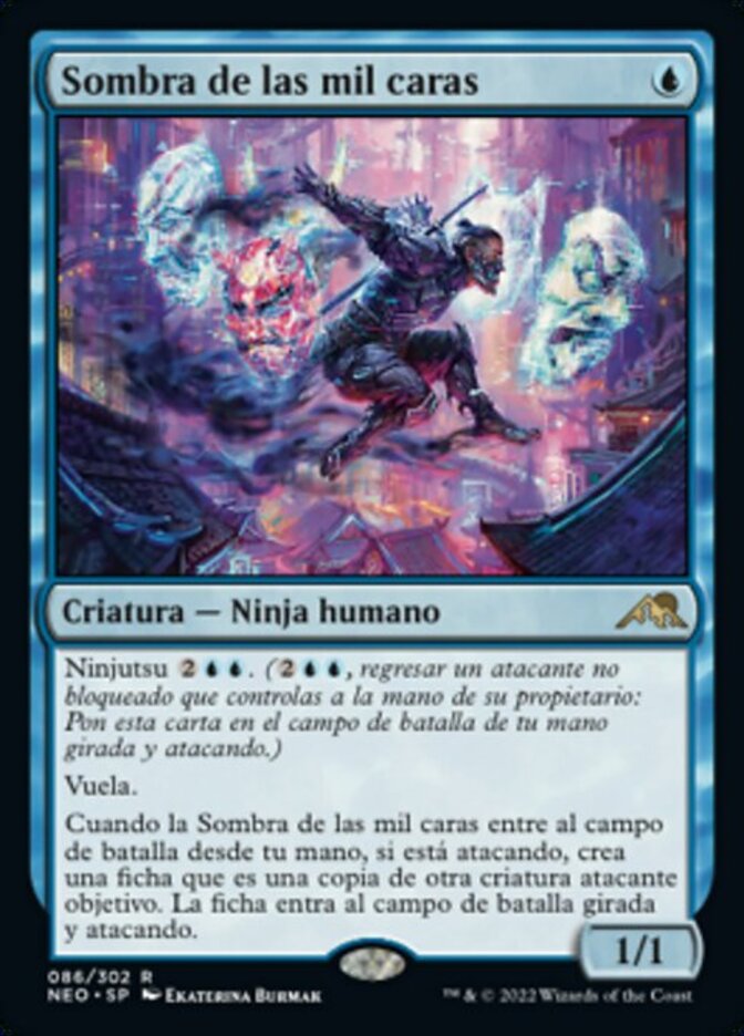 | Rules | Ninjutsu (, Return an unblocked attacker you control to hand: Put this card onto the battlefield from your hand tapped and attacking.) Flying When Thousand-Faced Shadow enters the battlefield from your hand, if it's attacking, create a token that's a copy of another target attacking creature. The token enters the battlefield tapped and attacking. |