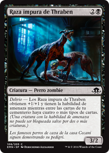 | Rules | Delirium — Thraben Foulbloods gets +1/+1 and has menace as long as there are four or more card types among cards in your graveyard. (A creature with menace can't be blocked except by two or more creatures.) |