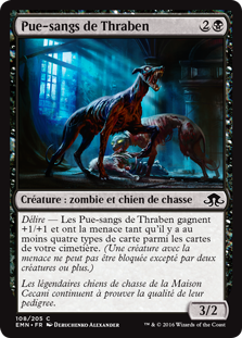 | Rules | Delirium — Thraben Foulbloods gets +1/+1 and has menace as long as there are four or more card types among cards in your graveyard. (A creature with menace can't be blocked except by two or more creatures.) |