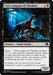 | Rules | Delirium — Thraben Foulbloods gets +1/+1 and has menace as long as there are four or more card types among cards in your graveyard. (A creature with menace can't be blocked except by two or more creatures.) |