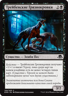 | Rules | Delirium — Thraben Foulbloods gets +1/+1 and has menace as long as there are four or more card types among cards in your graveyard. (A creature with menace can't be blocked except by two or more creatures.) |