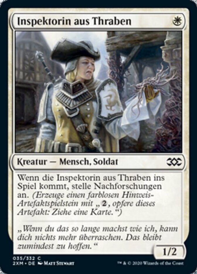 | Rules | When Thraben Inspector enters the battlefield, investigate. (Create a colorless Clue artifact token with ", Sacrifice this artifact: Draw a card.") |