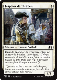 | Rules | When Thraben Inspector enters the battlefield, investigate. (Create a colorless Clue artifact token with ", Sacrifice this artifact: Draw a card.") |