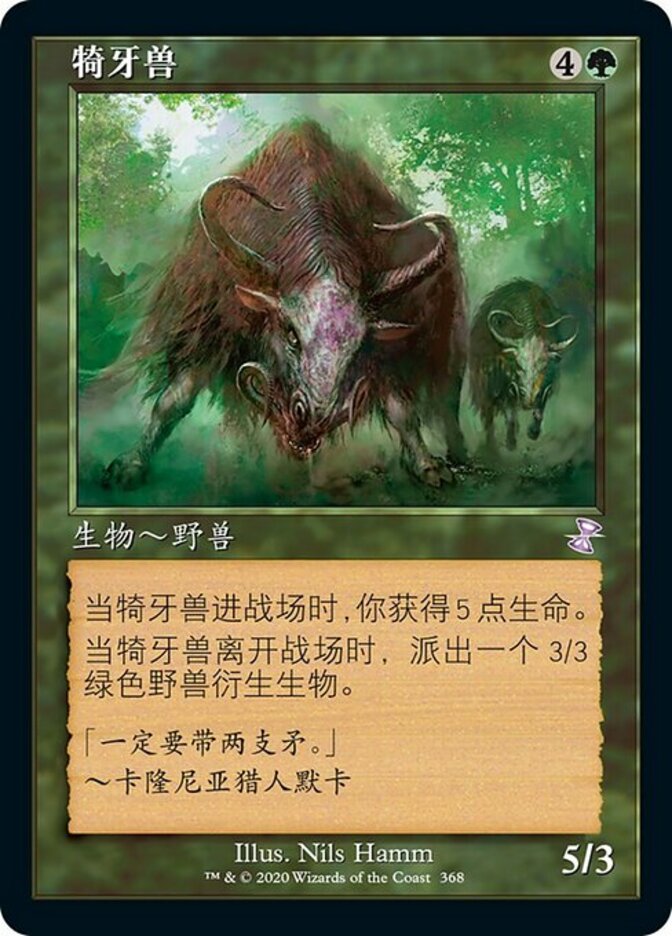 | Rules | When Thragtusk enters the battlefield, you gain 5 life. When Thragtusk leaves the battlefield, create a 3/3 green Beast creature token. |