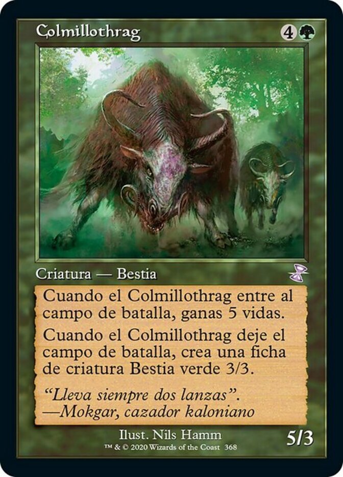 | Rules | When Thragtusk enters the battlefield, you gain 5 life. When Thragtusk leaves the battlefield, create a 3/3 green Beast creature token. |