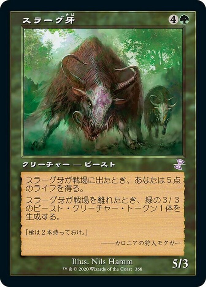 | Rules | When Thragtusk enters the battlefield, you gain 5 life. When Thragtusk leaves the battlefield, create a 3/3 green Beast creature token. |