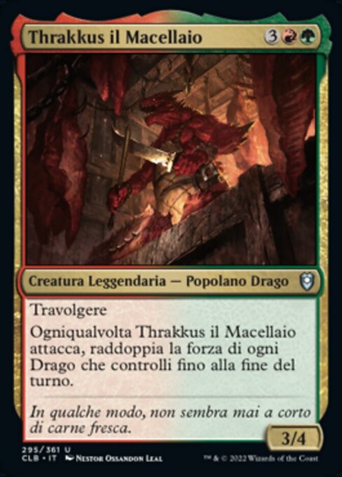 | Rules | Trample Whenever Thrakkus the Butcher attacks, double the power of each dragon you control until end of turn. |