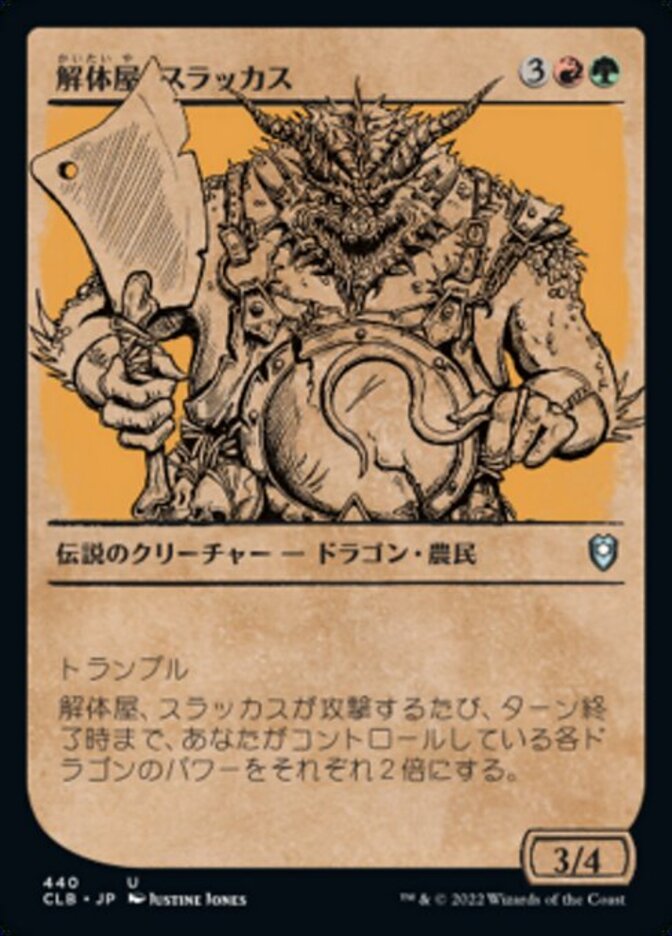 | Rules | Trample Whenever Thrakkus the Butcher attacks, double the power of each dragon you control until end of turn. |