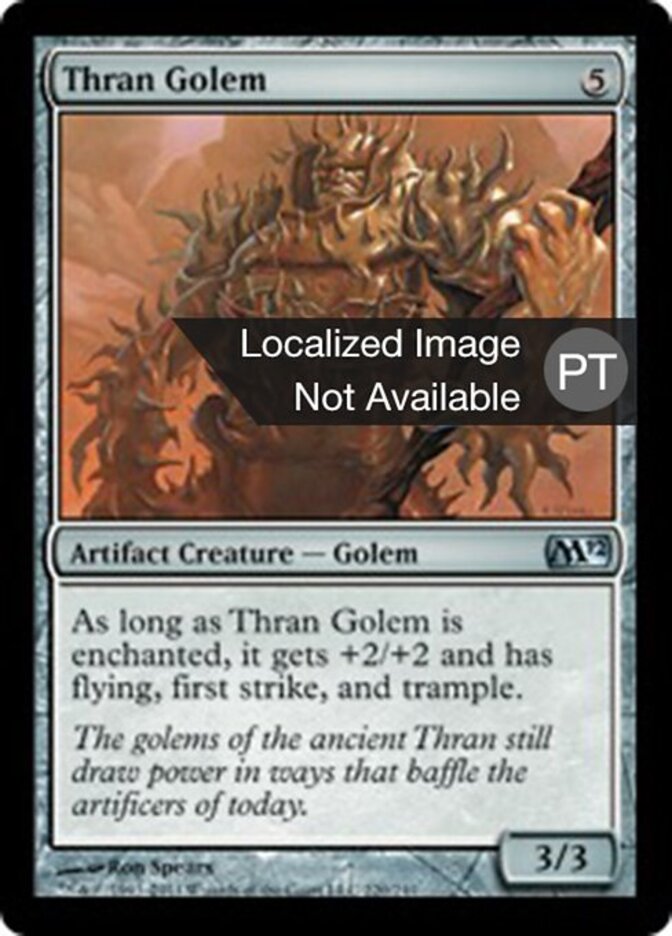 Rules As long as Thran Golem is enchanted, it gets +2/+2 and has flying, first strike, and trample.