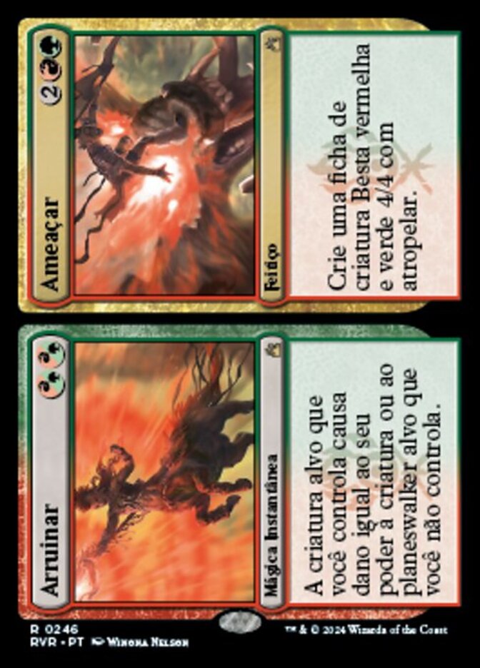 | Rules | Target creature you control deals damage equal to its power to target creature or planeswalker you don't control. // Create a 4/4 red and green Beast creature token with trample. |