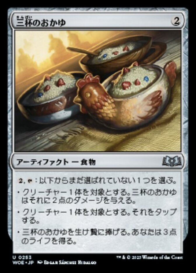 | Rules | , : Choose one that hasn't been chosen — • Three Bowls of Porridge deals 2 damage to target creature. • Tap target creature. • Sacrifice Three Bowls of Porridge. You gain 3 life. |
