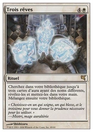 | Rules | Search your library for up to three Aura cards with different names, reveal them, put them into your hand, then shuffle. |