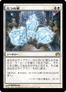 | Rules | Search your library for up to three Aura cards with different names, reveal them, put them into your hand, then shuffle. |