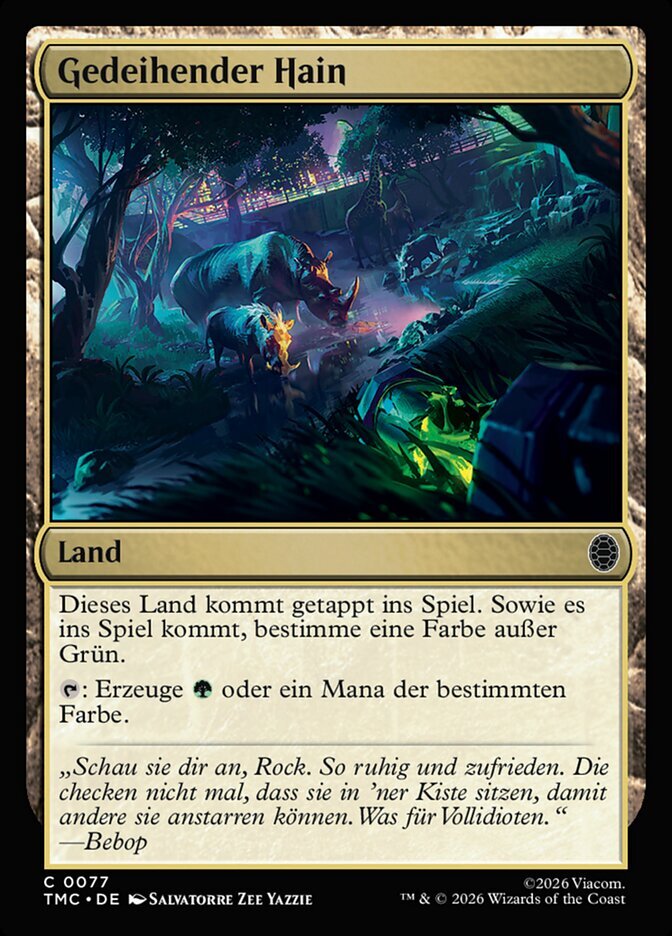 | Rules | Thriving Grove enters the battlefield tapped. As Thriving Grove enters the battlefield, choose a color other than green. : Add or one mana of the chosen color. |