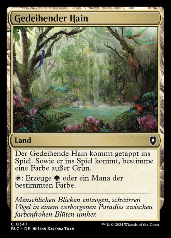 | Rules | Thriving Grove enters the battlefield tapped. As Thriving Grove enters the battlefield, choose a color other than green. : Add or one mana of the chosen color. |