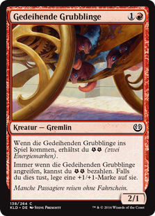 | Rules | When Thriving Grubs enters the battlefield, you get (two energy counters). Whenever Thriving Grubs attacks, you may pay . If you do, put a +1/+1 counter on it. |