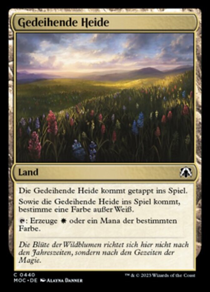 | Rules | Thriving Heath enters the battlefield tapped. As Thriving Heath enters the battlefield, choose a color other than white. : Add or one mana of the chosen color. |