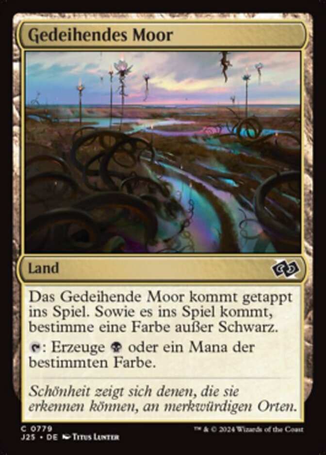 | Rules | Thriving Moor enters the battlefield tapped. As Thriving Moor enters the battlefield, choose a color other than black. : Add or one mana of the chosen color. |