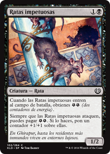 | Rules | When Thriving Rats enters the battlefield, you get (two energy counters). Whenever Thriving Rats attacks, you may pay . If you do, put a +1/+1 counter on it. |