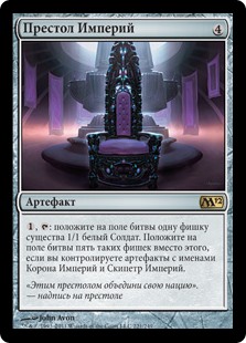 | Rules | , : Create a 1/1 white Soldier creature token. Create five of those tokens instead if you control artifacts named Crown of Empires and Scepter of Empires. |