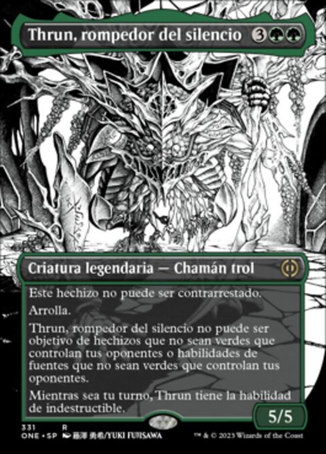 | Rules | This spell can't be countered. Trample Thrun, Breaker of Silence can't be the target of nongreen spells your opponents control or abilities from nongreen sources your opponents control. As long as it's your turn, Thrun has indestructible. |