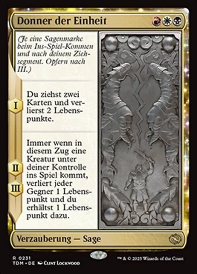 | Rules | (As this Saga enters step, add a lore counter. Sacrifice after III.) I — You draw two cards and you lose 2 life. II, III — Whenever a creature you control enters this turn, each opponent loses 1 life and you gain 1 life. |