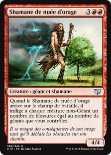 | Rules | When Thundercloud Shaman enters the battlefield, it deals damage equal to the number of Giants you control to each non-Giant creature. |