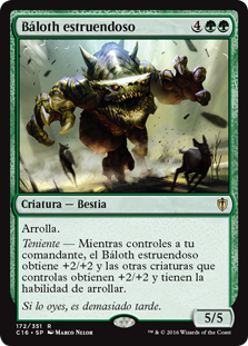 | Rules | Trample Lieutenant — As long as you control your commander, Thunderfoot Baloth gets +2/+2 and other creatures you control get +2/+2 and have trample. |