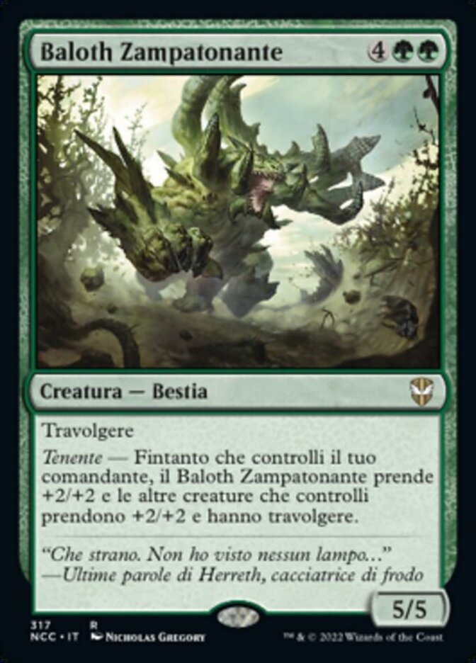 | Rules | Trample Lieutenant — As long as you control your commander, Thunderfoot Baloth gets +2/+2 and other creatures you control get +2/+2 and have trample. |
