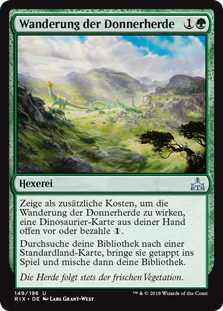 | Rules | As an additional cost to cast this spell, reveal a Dinosaur card from your hand or pay . Search your library for a basic land card, put it onto the battlefield tapped, then shuffle. |