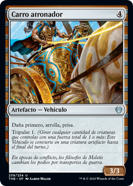 | Rules | First strike, trample, haste Crew 1 (Tap any number of creatures you control with total power 1 or more: This Vehicle becomes an artifact creature until end of turn.) |