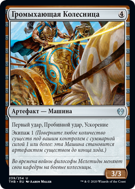 | Rules | First strike, trample, haste Crew 1 (Tap any number of creatures you control with total power 1 or more: This Vehicle becomes an artifact creature until end of turn.) |