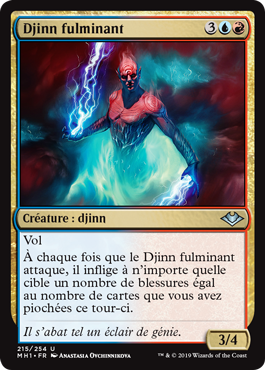 | Rules | Flying Whenever Thundering Djinn attacks, it deals damage to any target equal to the number of cards you've drawn this turn. |