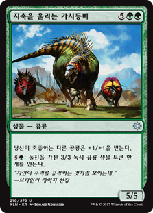 | Rules | Other Dinosaurs you control get +1/+1. : Create a 3/3 green Dinosaur creature token with trample. |