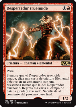 | Rules | Haste Whenever Thunderkin Awakener attacks, choose target Elemental creature card in your graveyard with toughness less than Thunderkin Awakener's toughness. Return that card to the battlefield tapped and attacking. Sacrifice it at the beginning of the next end step. |