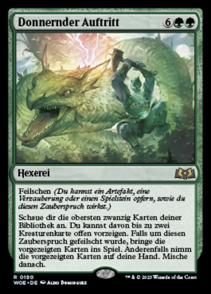 | Rules | Bargain (You may sacrifice an artifact, enchantment, or token as you cast this spell.) Look at the top twenty cards of your library. You may reveal up to two creature cards from among them. If this spell was bargained, put the revealed cards onto the battlefield. Otherwise, put the revealed cards into your hand. Then shuffle. |