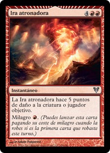 | Rules | Thunderous Wrath deals 5 damage to any target. Miracle (You may cast this card for its miracle cost when you draw it if it's the first card you drew this turn.) |