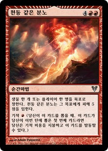 | Rules | Thunderous Wrath deals 5 damage to any target. Miracle (You may cast this card for its miracle cost when you draw it if it's the first card you drew this turn.) |