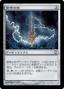 | Rules | As long as Thunderstaff is untapped, if a creature would deal combat damage to you, prevent 1 of that damage. , : Attacking creatures get +1/+0 until end of turn. |