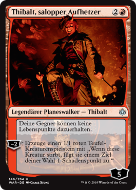 | Rules | Your opponents can't gain life. −2: Create a 1/1 red Devil creature token with "When this creature dies, it deals 1 damage to any target." |