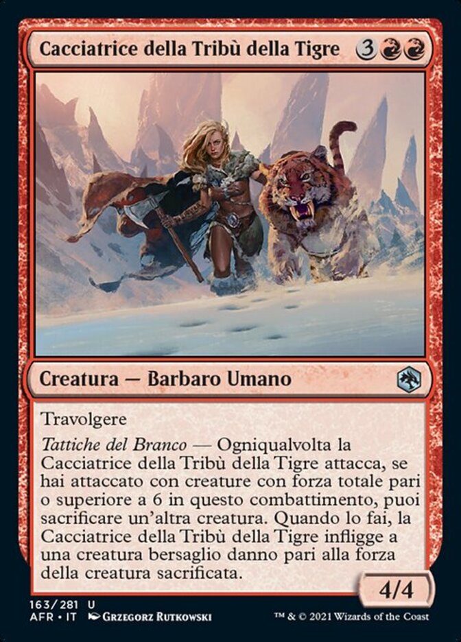 | Rules | Trample Pack tactics — Whenever Tiger-Tribe Hunter attacks, if you attacked with creatures with total power 6 or greater this combat, you may sacrifice another creature. When you do, Tiger-Tribe Hunter deals damage equal to the sacrificed creature's power to target creature. |